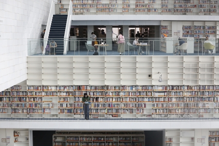 知识海洋.天津图书馆:是我国历史悠久的省级公共图书馆,前身是创建于1908年(清光绪三十四年)6月9日的直隶图书馆,随着时代变迁,历经沧桑,直到1982年正式更名为“天津图书馆”。 2012年5月,坐落于天津市文化中心的天津图书馆文化中心馆建成开放。其建筑结构注重功能与空间相对应,一层以南北贯穿的通廊状大厅为中心,犹如连接公园和平江道的通廊,南北贯通,布置了总接待台、展厅、自习室、餐厅和咖啡厅,其间的活动、功能等自然地渗透到通廊中。吊顶高度很高,明亮的自然光从上部的天窗透射进来。虽然是在室内,但犹如街道般开放。越向上层走,图书的专业性越强。“漂浮”的白色墙体载着整面的书籍环绕在身边,空灵唯美的殿堂感让读者感到自己置身于知识的海洋。(部分内容来源于网络,如有侵权,请联系注明出处。)