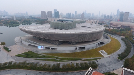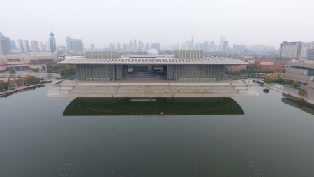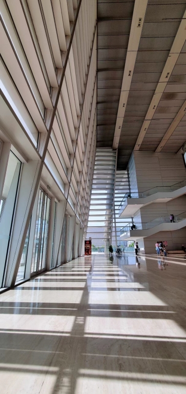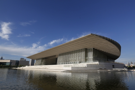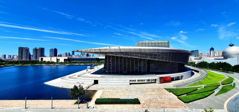 大剧院居于文化中心中央位置,是天津文化中心内最大的单体建筑,其规模仅次于北京的国家大剧院。亲水台阶上,半圆形屋盖下,三个玻璃体演出场馆,由统一的屋檐遮盖。雕梁飞檐,以石材叠层挑檐做法对中国传统飞椽檐和重檐进行现代诠释,剧院内部的辉煌灯光外透,文化艺术气息浓郁,是富有天津特色与文化内涵的“城市客厅”,与城市空间融合共生。(部分内容来源于网络,如有侵权,请联系注明出处。)