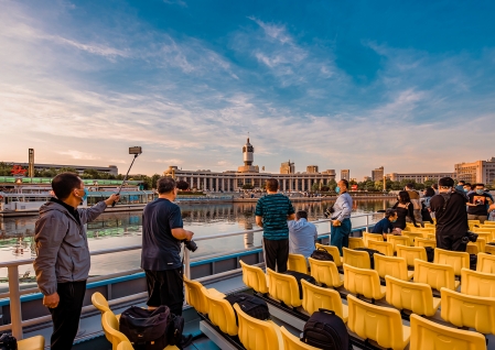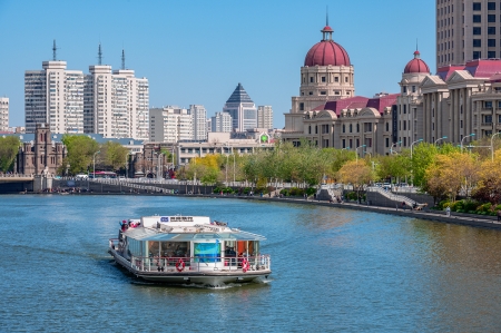 关于打开海河的正确方式,除了漫步于海河沿岸之外,还有一种——那就是乘游船海河,这也是打开海河的最美方式。作为天津的风景轴线,海河蜿蜒多姿,穿城而过,注入渤海。望海楼教堂,隔河相望。无论是大鲸鱼外形的“海河号”到仿古的“黄莲圣母号”,还是主打全通透豪华观景风格的“海河观光”系列,海河游船作为海河上一道流动的风景,见证了海河的变迁。